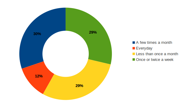 Taking a slight higher picture the split a 41% using it weekly, a 30% monthly and a 29% less than monthly. Usage frequency remains globally the same between 2012 and 2014.