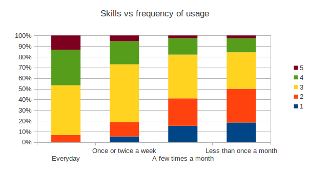 Very briefly, the more often people use it the better their skills are.