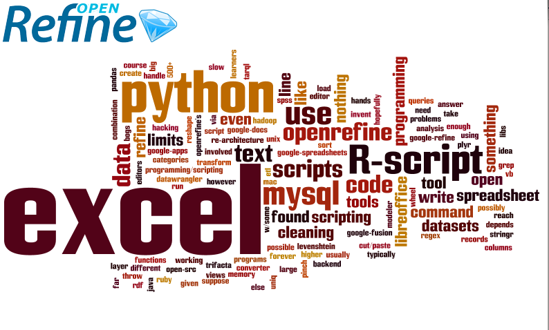 As in 2012 the tools OpenRefine is benchmarked against split into programming / scripting languages (python, R, MySQL) and spreadsheet based interface like Excel or LibreOffice.